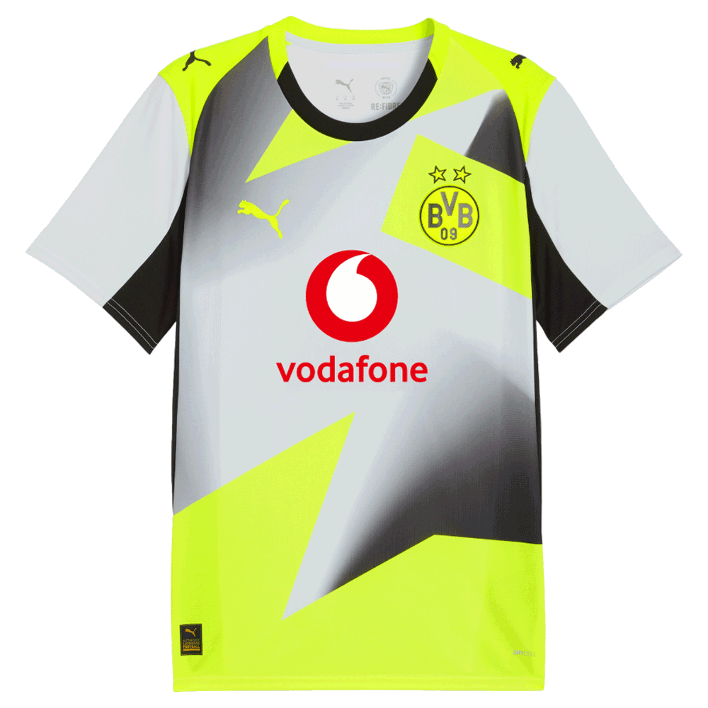 Das BVB Auswärtstrikot 25/26 Kids ist ein Must-Have für jeden kleinen Borussia Dortmund Fan. In den traditionellen schwarz-gelben Vereinsfarben des BVB gehalten, zeigt das Trikot stolz das Logo des Vereins sowie den Schriftzug "Echte Liebe". Hergestellt aus hochwertigem Material und offiziell lizenziert vom Signal-Iduna Park, ist dieses Trikot nicht nur ein stylishes Kleidungsstück, sondern auch ein Sammlerstück für echte BVB-Fans. Ein absolutes Highlight und ein Must-Have für jeden jungen Fußballfan!